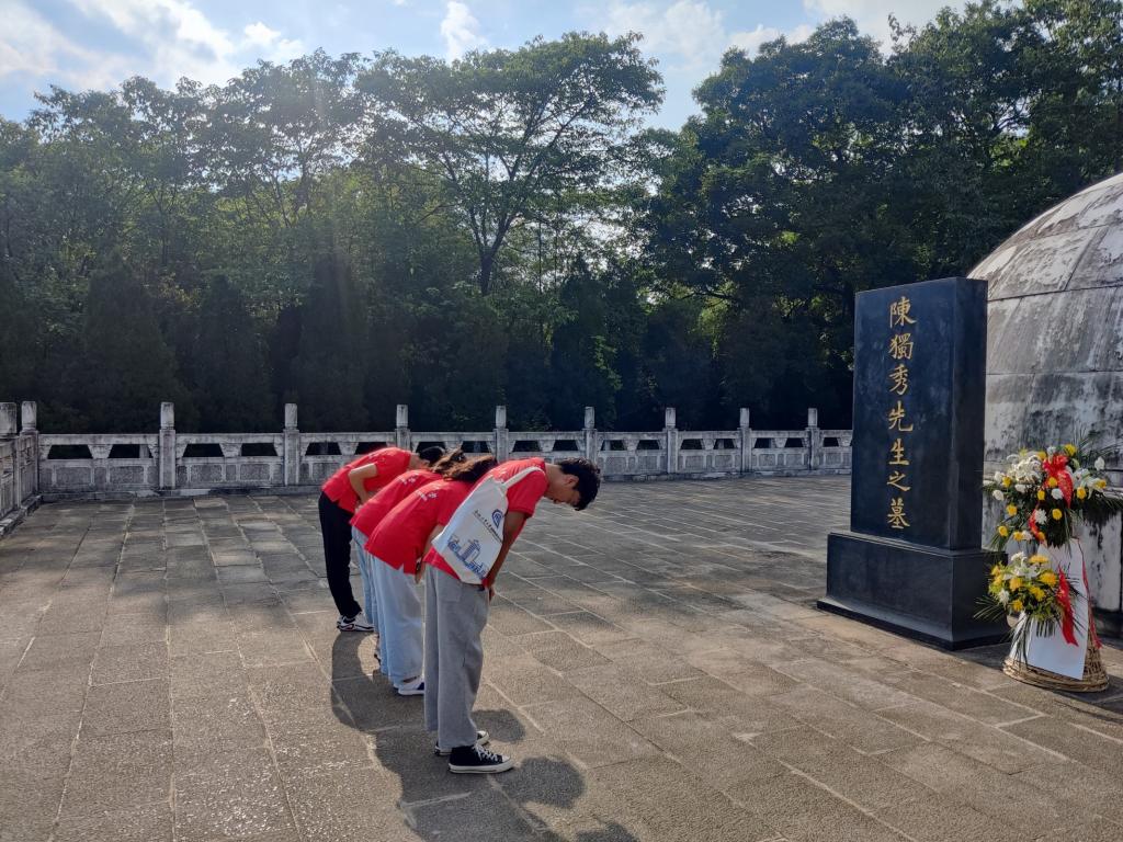 随后,团队成员先后参观了气势恢宏的“惊雷”浮雕、威武庄严的汉白玉牌坊、意气风发的陈独秀铜质塑像、引人深思的《新青年》杂志碑刻和令人缅怀的陈独秀墓冢。面对陈独秀墓冢,团队成员深深鞠躬,以表达对先辈的崇高敬仰和深切缅怀。
