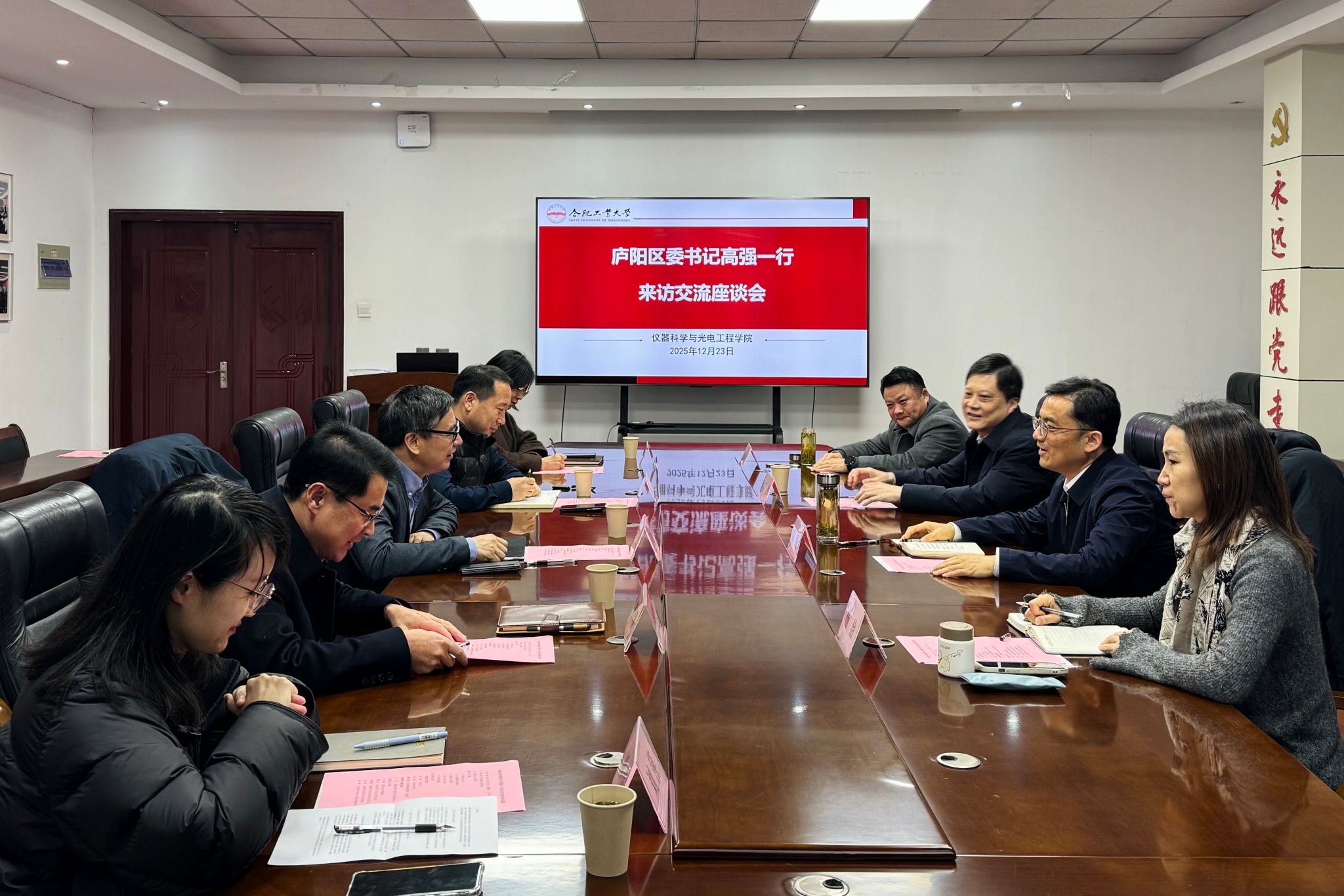 会上,丁立健首先代表学校对高强书记一行来访表示热烈欢迎,并详细介绍了学校的办学历史、学科布局、科研方向及在高端仪器和传感器等领域的研究成果。他表示,学校始终坚持面向国家重大战略需求和区域经济社会发展,在相关领域拥有深厚的技术储备和人才优势,期待与庐阳区展开全方位合作,实现产学研深度融合。