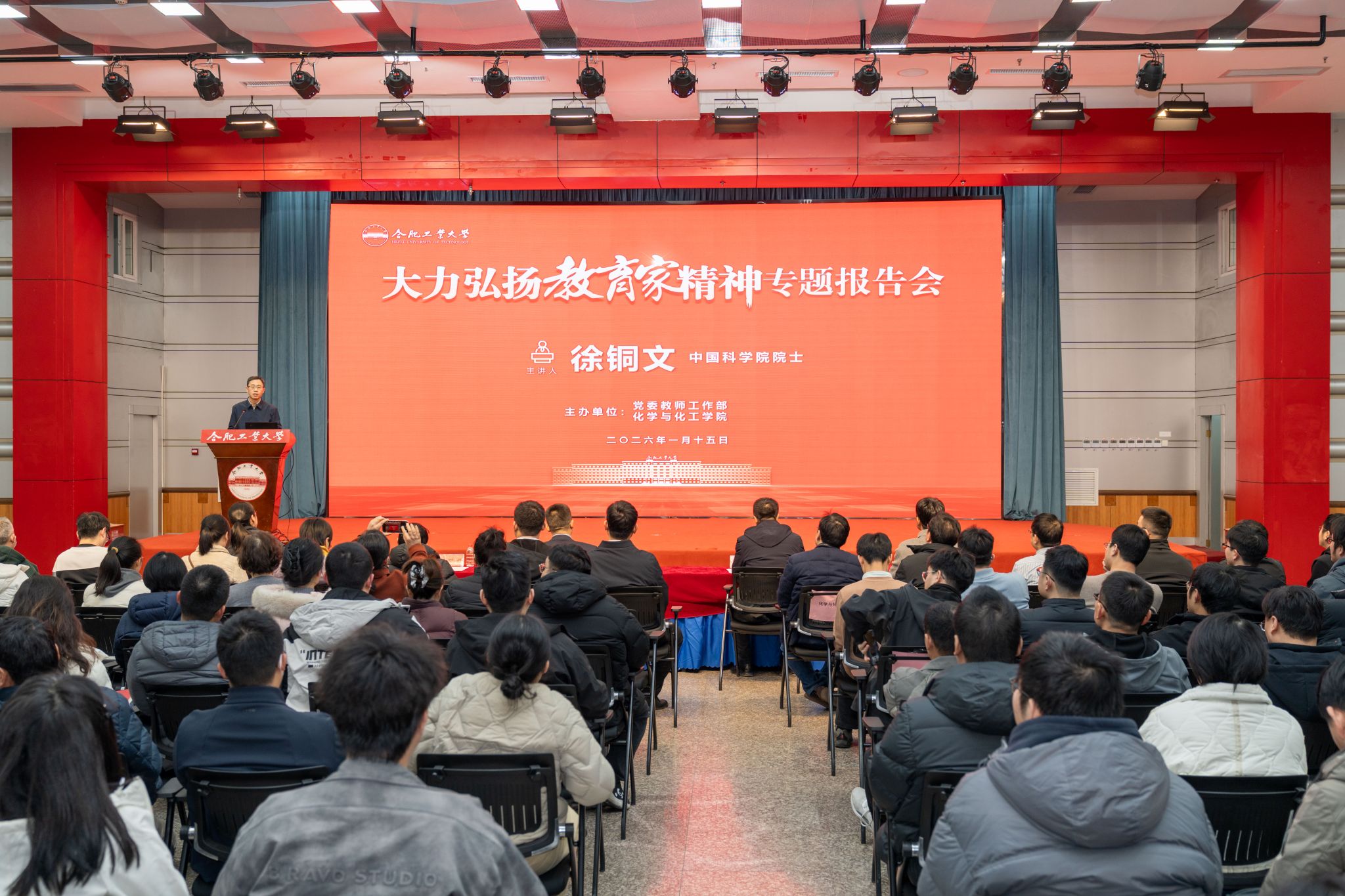 谈及教育初心,徐铜文院士分享了多个学生培养的鲜活案例,结合自身立德树人的深切感悟,勉励青年教师既要传承严谨求实、勇攀高峰的科学家精神,更要厚植爱岗敬业、潜心育人的教育家情怀,以坚定信念与实干担当在教育科研道路上砥砺前行。