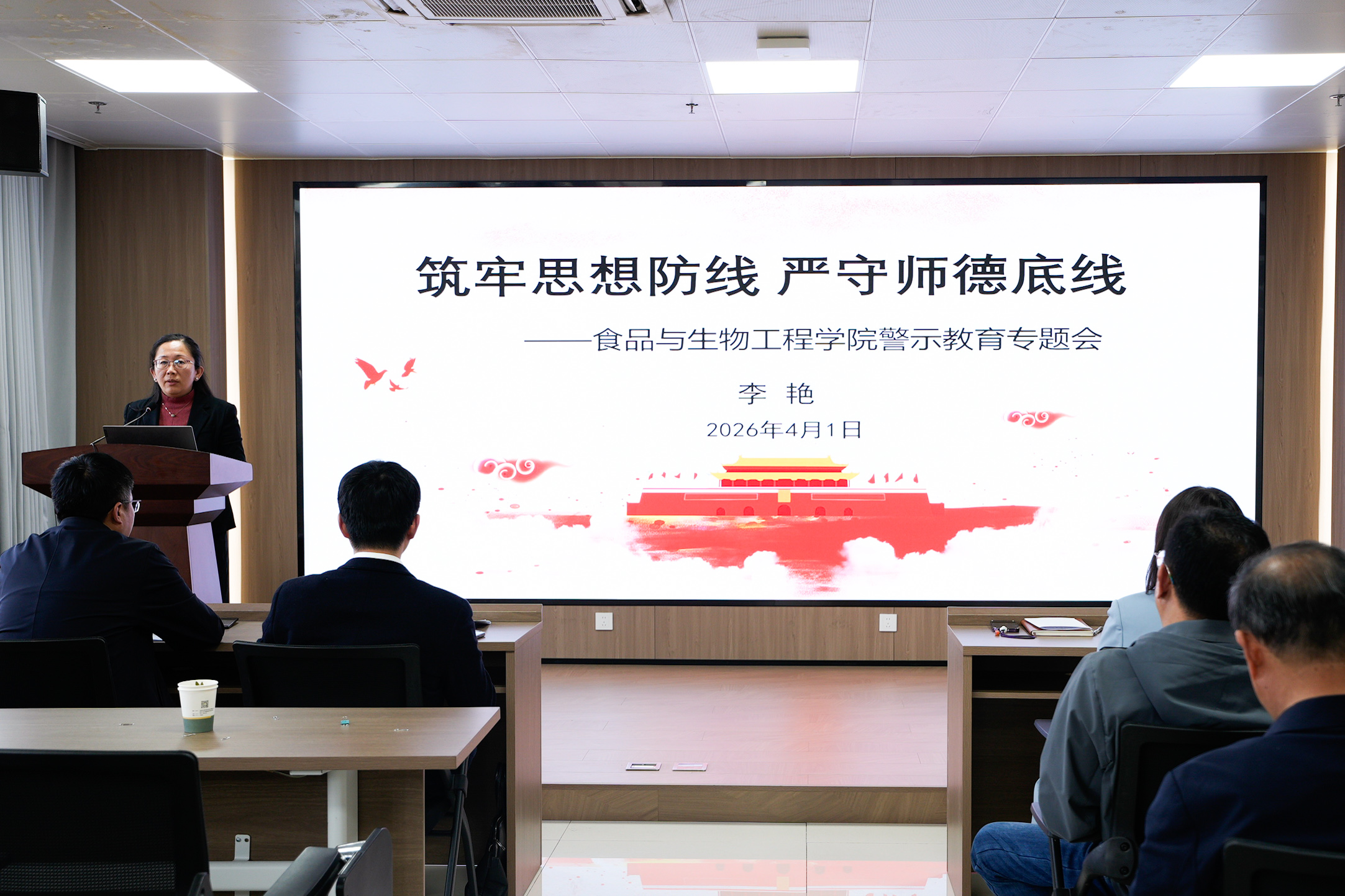 4月1日,食品与生物工程学院在306会议室召开全体教职工大会,学院党委副书记兼纪委书记李艳作专题警示教育。