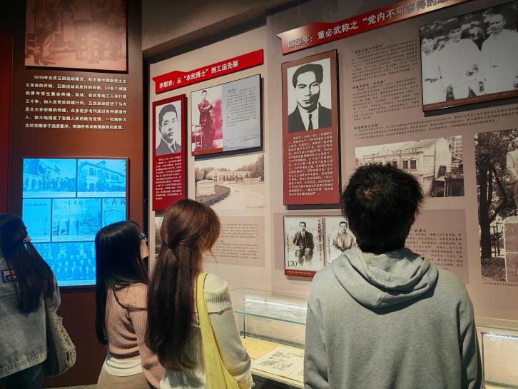 仪式结束后,同学们走进安徽革命烈士事迹陈列馆,认真参观学习。馆内陈延年、李慰农等江淮英烈的生平事迹、珍贵历史照片与馆藏文物,生动还原了安徽大地波澜壮阔的革命斗争历程,勾勒出英烈们为信仰赴汤蹈火、为人民鞠躬尽瘁的英雄群像。大家结合专业所学与理论研究,在历史现场感悟真理力量,深刻领会英烈精神与马克思主义中国化时代化的内在逻辑关联,在沉浸式学习中接受了一次深刻的党性淬炼、政治洗礼和精神滋养。
