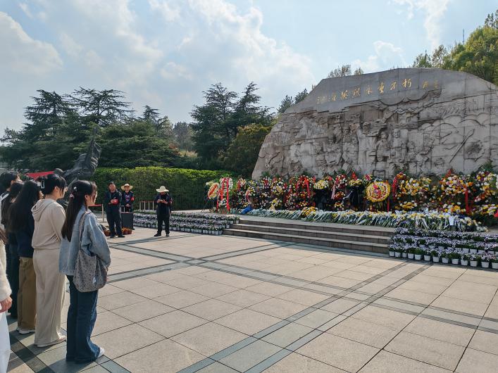 在镌刻着“江淮英烈永垂不朽”的革命纪念碑前,同学们整齐肃立、低头默哀,深切缅怀为民族独立、人民解放和国家富强抛头颅、洒热血的革命先烈,寄托对英烈的无限哀思。默哀毕,大家依次缓步上前敬献鲜花,以庄重的仪式、诚挚的心意表达对革命英烈的崇高敬意,庄严肃穆的现场氛围,尽显马院学子坚定的政治立场、赤诚的爱党情怀和强烈的使命担当。