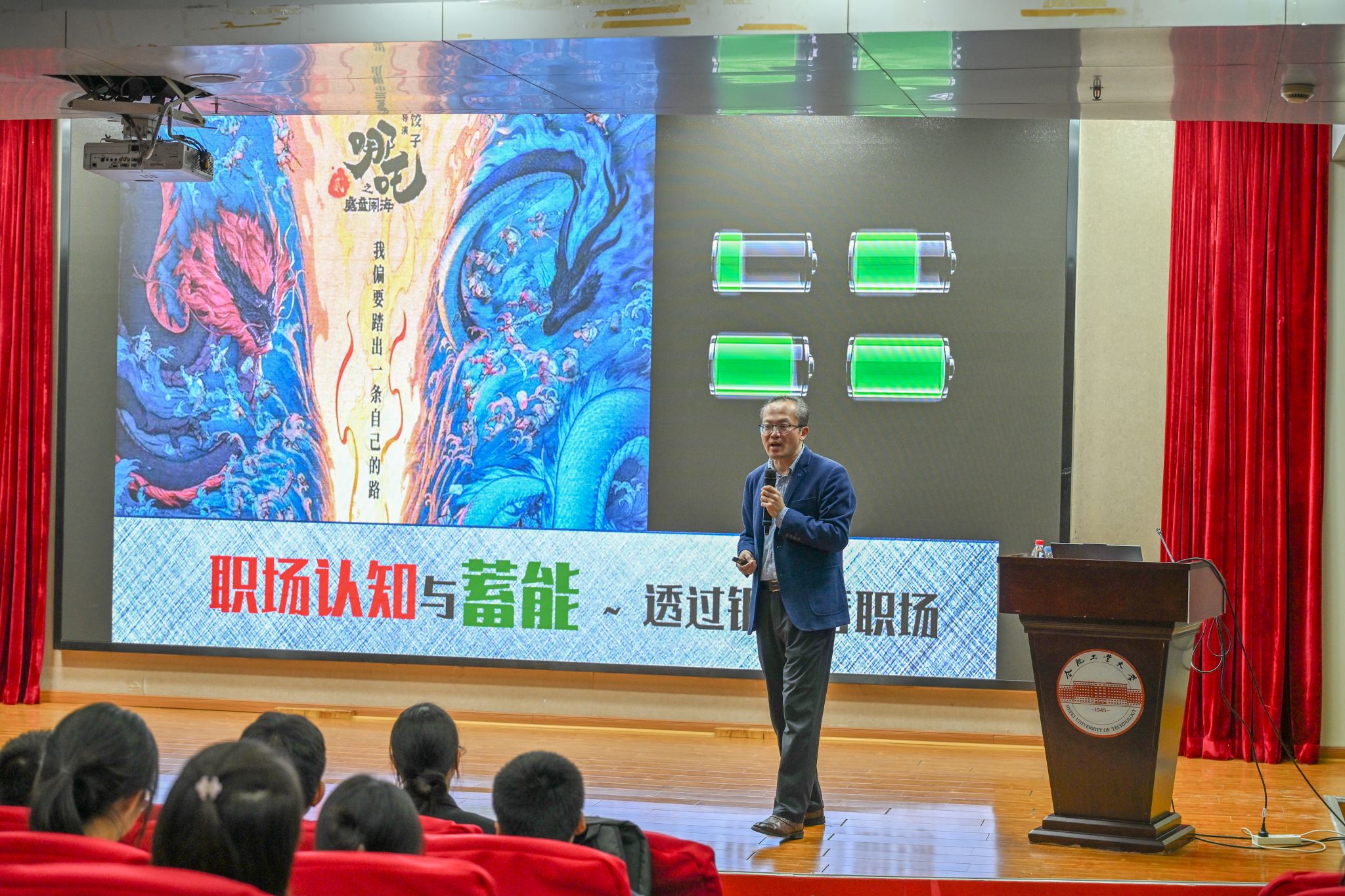 11月7日晚19:00,我校“行业大咖进校园”职业规划系列活动的首期讲座在翡翠湖校区建艺馆负一楼报告厅如期举行。此次活动特别邀请了资深人力资源管理专家、教育部首批全国优秀创新创业导师、共青团中央中国青年创业导师宋敬担任首期主讲嘉宾。现场座无虚席,气氛热烈非凡。