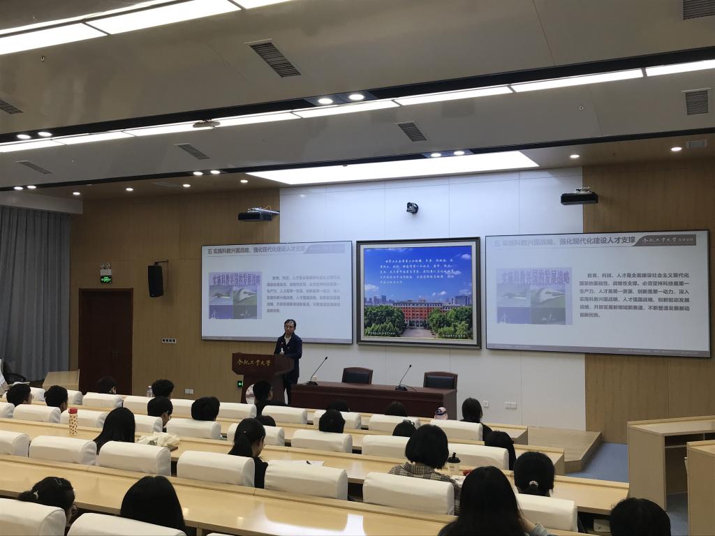 为推动深入学习贯彻习近平新时代中国特色社会主义思想,全面落实“学思想、强党性、重实践、建新功”的主题教育总要求,5月24日下午,管理学院付超教授为低年级本科生50余人上专题党课。