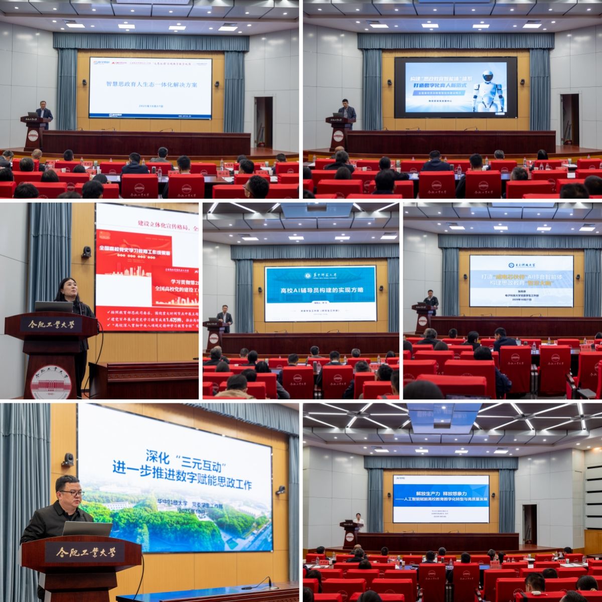 10月27日,合肥工业大学AI辅导员发布仪式暨“智汇思政 育见未来”创新发展论坛在屯溪路校区学术会议中心成功举办。中教华影董事长、教育部中国大学生在线、全国高校思政网主任王卫权,校党委副书记胡笑旋,教育部易班发展中心主任、易班总裁朱明伦,科大讯飞安徽大区执行总经理徐军等出席仪式。