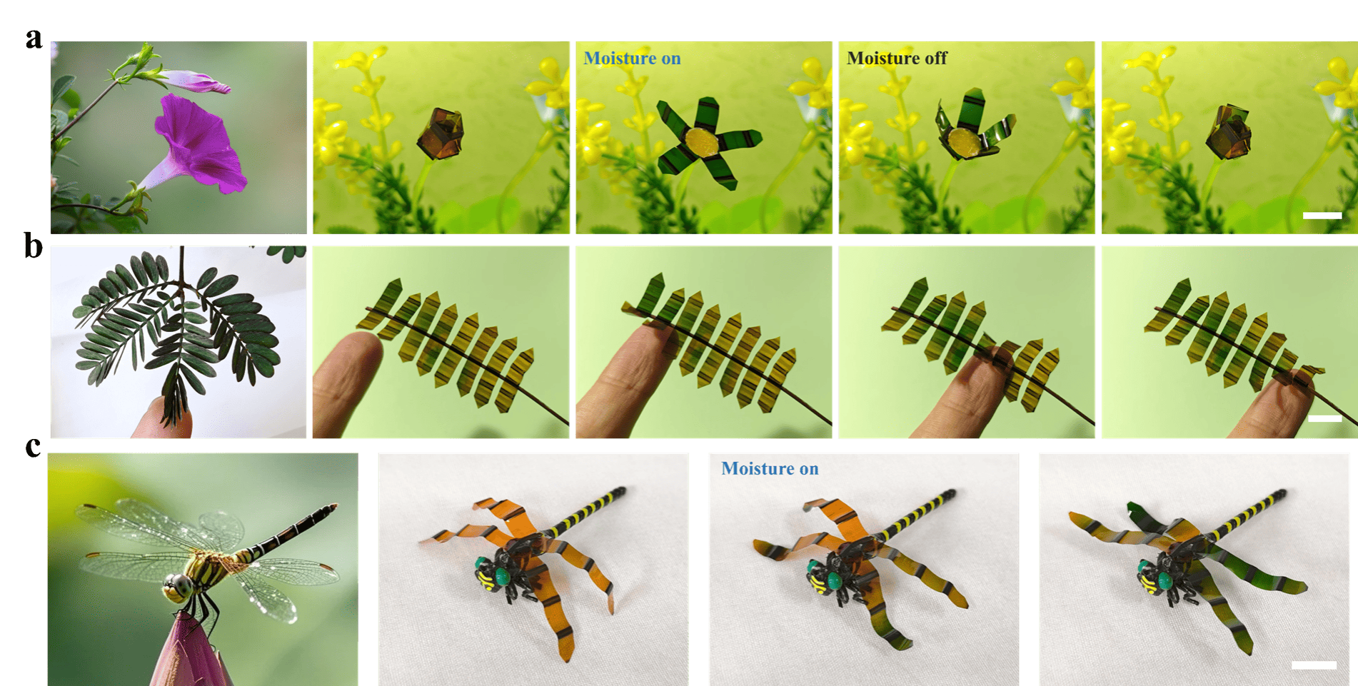 图1.叶片启发的可编程变形及湿敏变色驱动器的设计